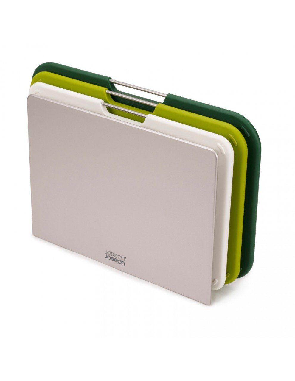 Bu akıllı renk kodlu kesme tahtaları seti, kendi şık depolama standıyla birlikte gelir, bu da tahtaları erişimi çok kolay hale getirir ve herhangi bir çalışma tezgahında şık durur. Her bir tahta, çeşitli gıda hazırlama görevleri için farklı boyutlardadır ve kolay kaldırılabilir paslanmaz çelik çubuk, kaymaz ayaklar ve dokulu kesme yüzeyine sahiptir. Stand, her bir tahtayı ayrı tutar ,bu da tam kuruma için hava sirkülasyonu sağlar ve tabanda kaymaz ayaklar içerir. Tahta boyutları: Küçük 19 x 28,5 cm; Orta 20 x 30 cm; Büyük 21 x 32 cm.